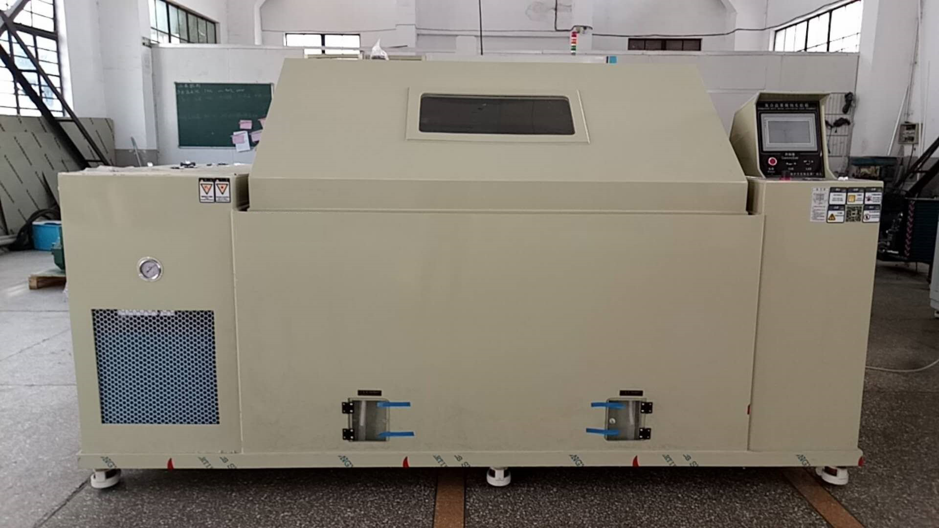 盐雾试验箱利用一定浓度的盐溶液或酸性盐溶液,在一定的温度和通过盐雾喷淋的方法在一定的相对湿度的环境下对进行加速盐雾腐蚀试验。盐雾试验箱主要用来考核样品材料及其涂层、电镀层等防护层的抗盐雾腐蚀的性能,以及相似相同的防护层之间的工艺质量的比较。